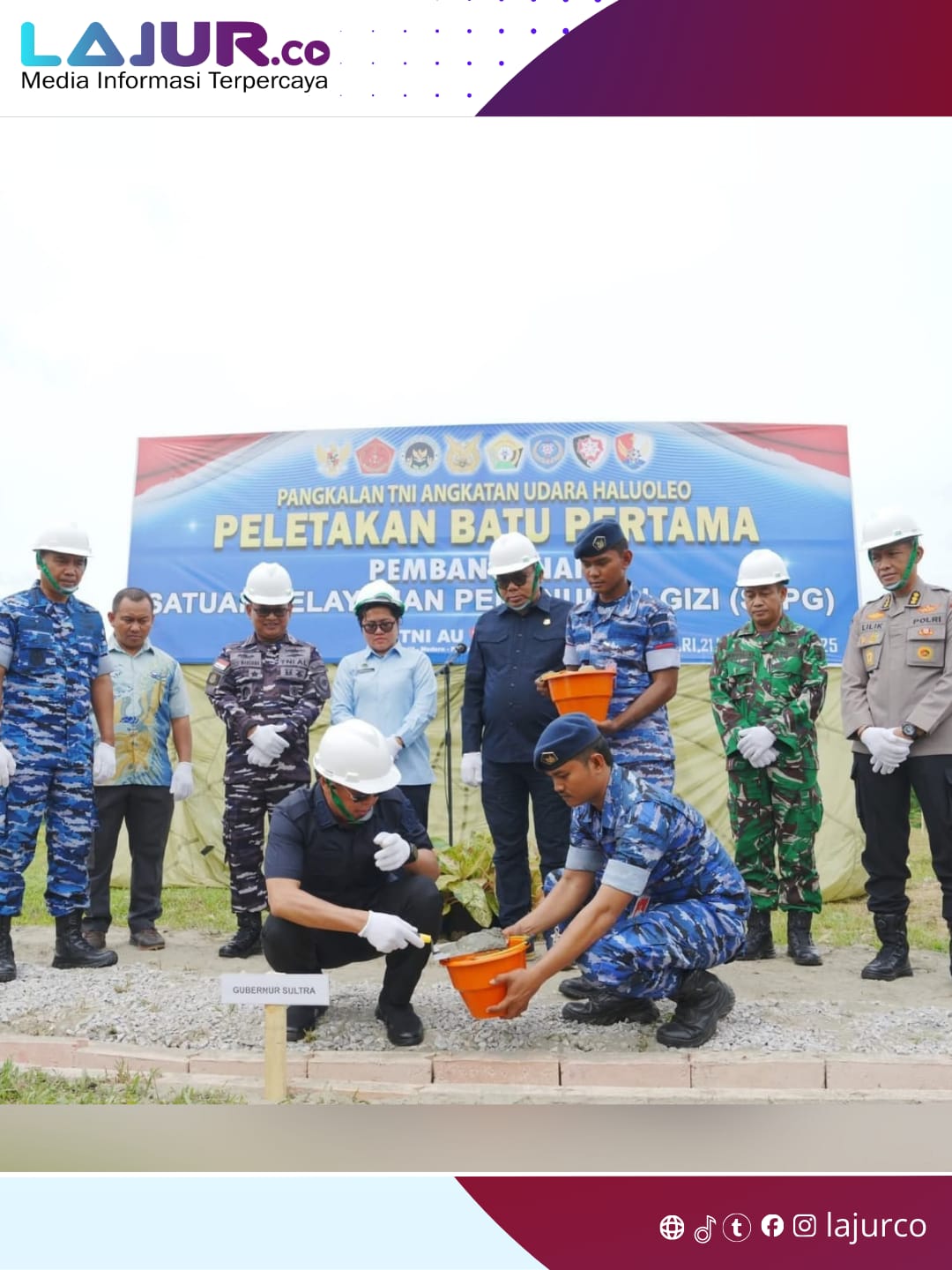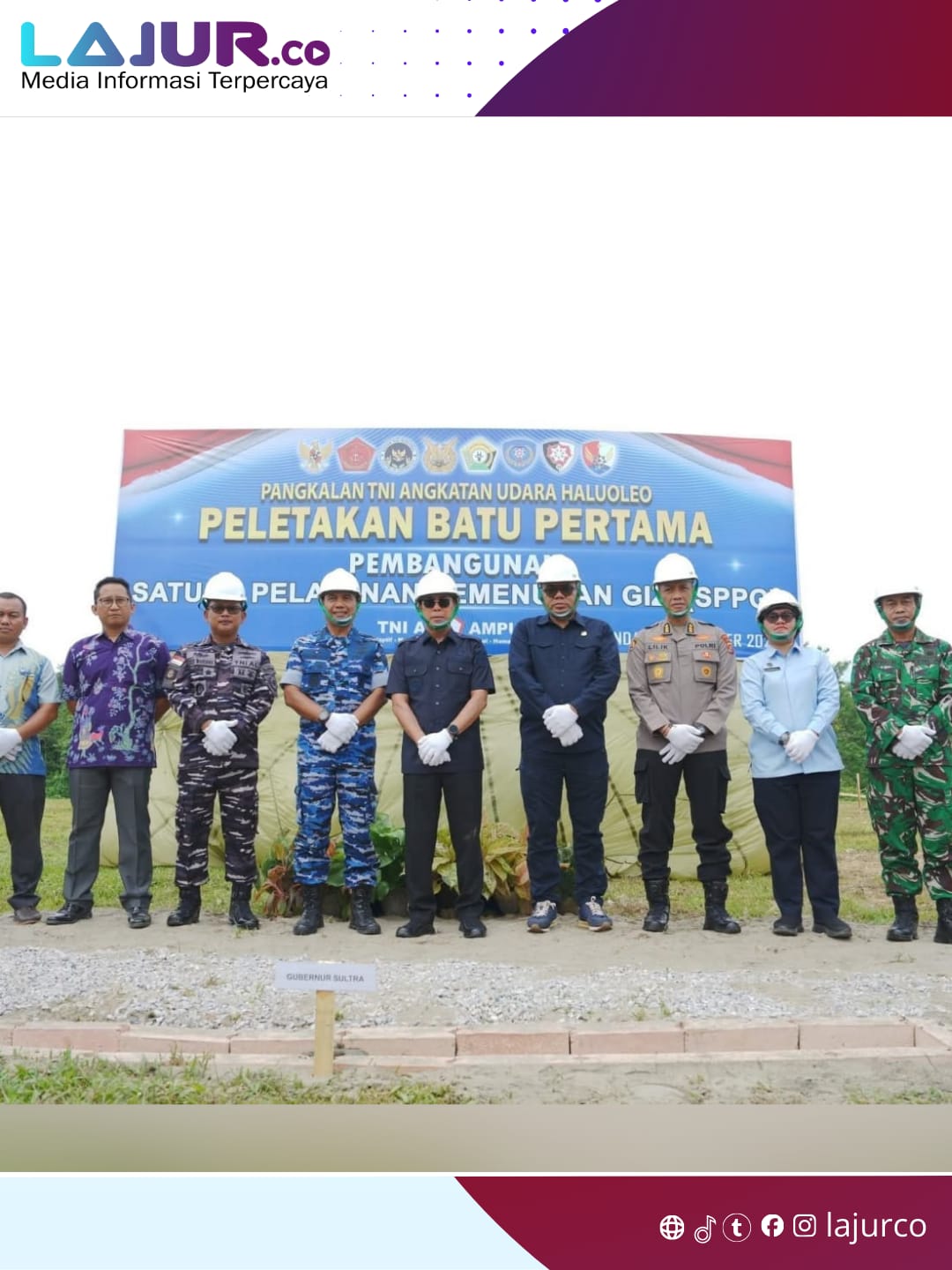 LAJUR.CO, KENDARI – Gubernur Sulawesi Tenggara (Sultra), Mayjen TNI (Purn) Andi Sumangerukka, meletakkan batu pertama pembangunan Dapur Satuan Pelayanan Pemenuhan Gizi (SPPG) Lanud Halu Oleo di Konawe Selatan, Jumat (21/11/2025). Proyek tersebut merupakan SPPG ke-301 dari 324 dapur yang direncanakan di Sultra, dengan target selesai 45 hari dan mulai beroperasi Januari 2026.