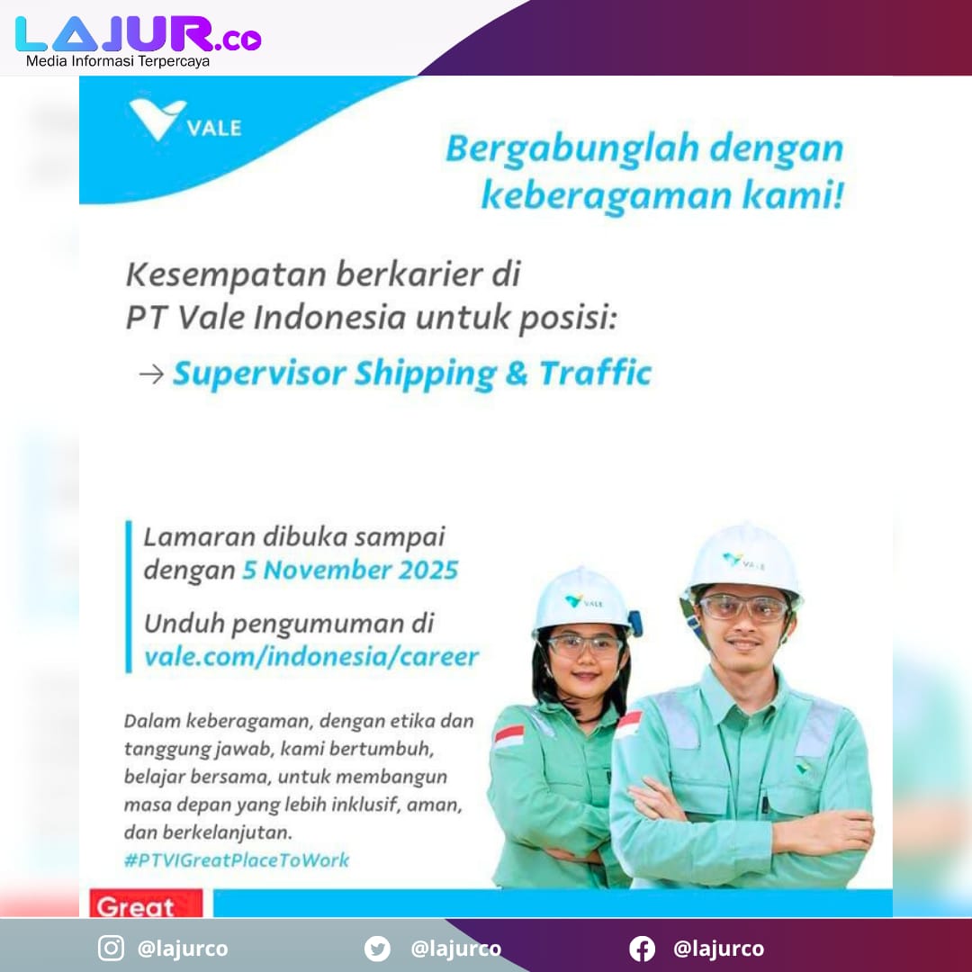 Perusahaan tambang nikel terkemuka di tanah air ini membuka posisi ‘Supervisor Shipping & Traffic’ untuk penempatan di Sorowako, Sulawesi Selatan (Sulsel). Proses rekrutmen yang dibuka secara nasional ini dapat diakses hingga 5 November 2025.