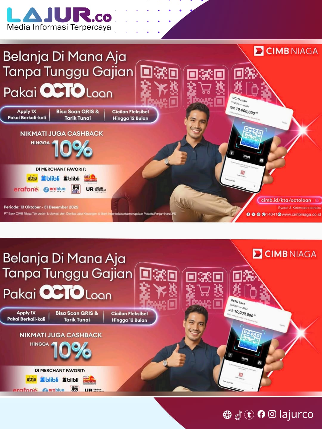 LAJUR.CO, KENDARI – PT Bank CIMB Niaga Tbk (CIMB Niaga) terus berinovasi untuk menghadirkan solusi finansial yang relevan dengan kebutuhan nasabah dan masyarakat sesuai purpose Advancing Customers and Society. Terbaru, CIMB Niaga melalui produk pinjaman OCTO Loan meluncurkan fitur Bayar Transaksi Pakai QRIS dari aplikasi OCTO dengan memanfaatkan limit pinjaman OCTO Loan.