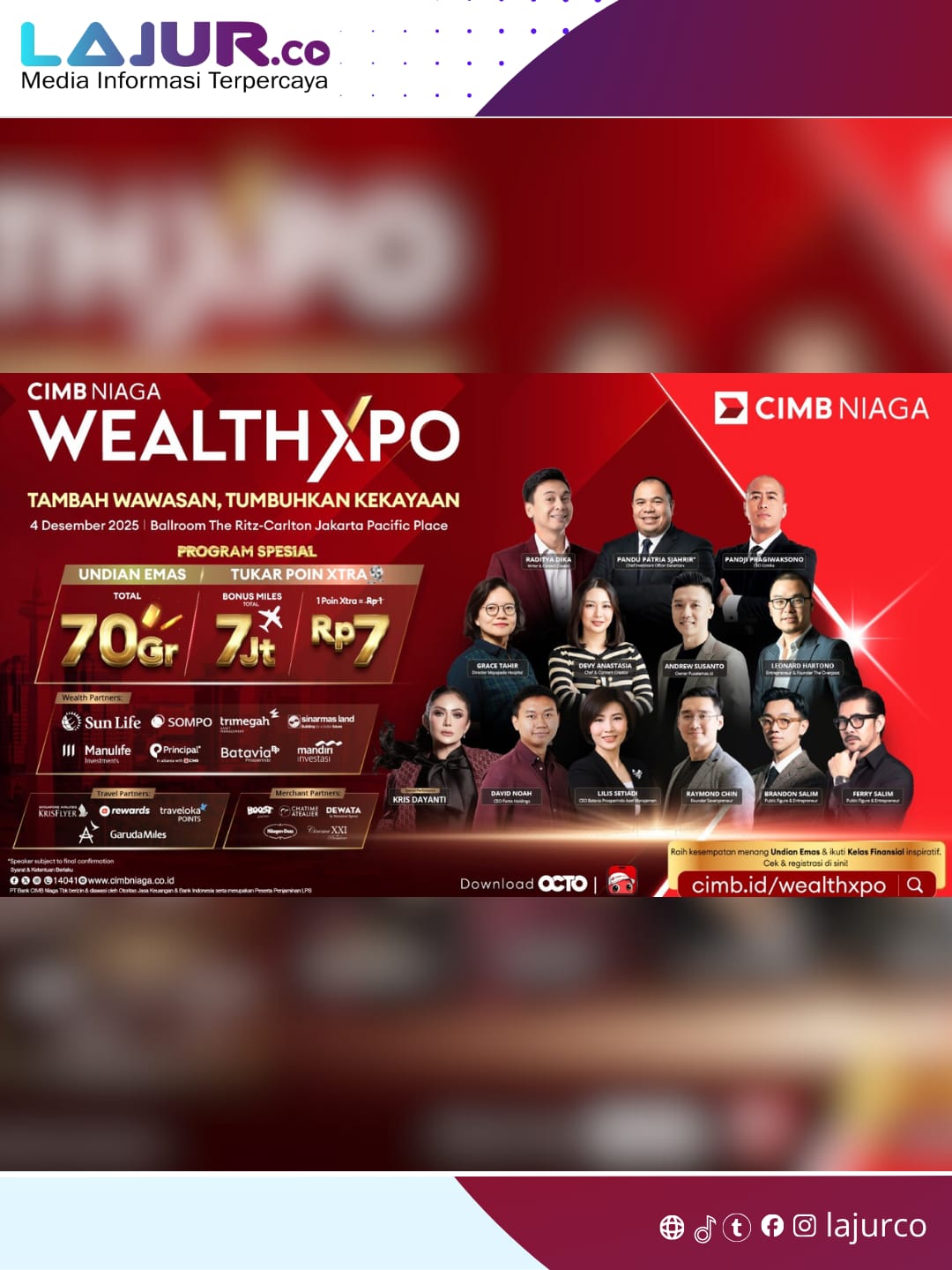 “Kombinasi antara teknologi dan pendampingan manusia menjadi kekuatan utama CIMB Niaga dalam menghadirkan pengalaman wealth management yang aman, mudah, dan relevan. Kami juga siap membantu nasabah melindungi kekayaannya dari tekanan inflasi melalui beragam instrumen investasi yang sesuai profil risiko. Nantikan Wealth Xpo 2025 di Surabaya dan Jakarta dan temukan solusi finansial yang tepat untuk mengoptimalkan kekayaan,” pungkas Noviady.