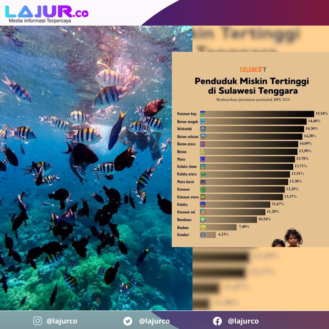 Kabupaten Wakatobi, misalnya, dikenal luas sebagai “Surga Nyata Bawah Laut di pusat Segitiga Karang Dunia”, menghadirkan potret yang sangat kontras. Dalam rangking BPS, penduduk di gugusan pulau ini menempati posisi ketiga tertinggi angka kemiskinan dengan persentase mencapai 14,36 persen.