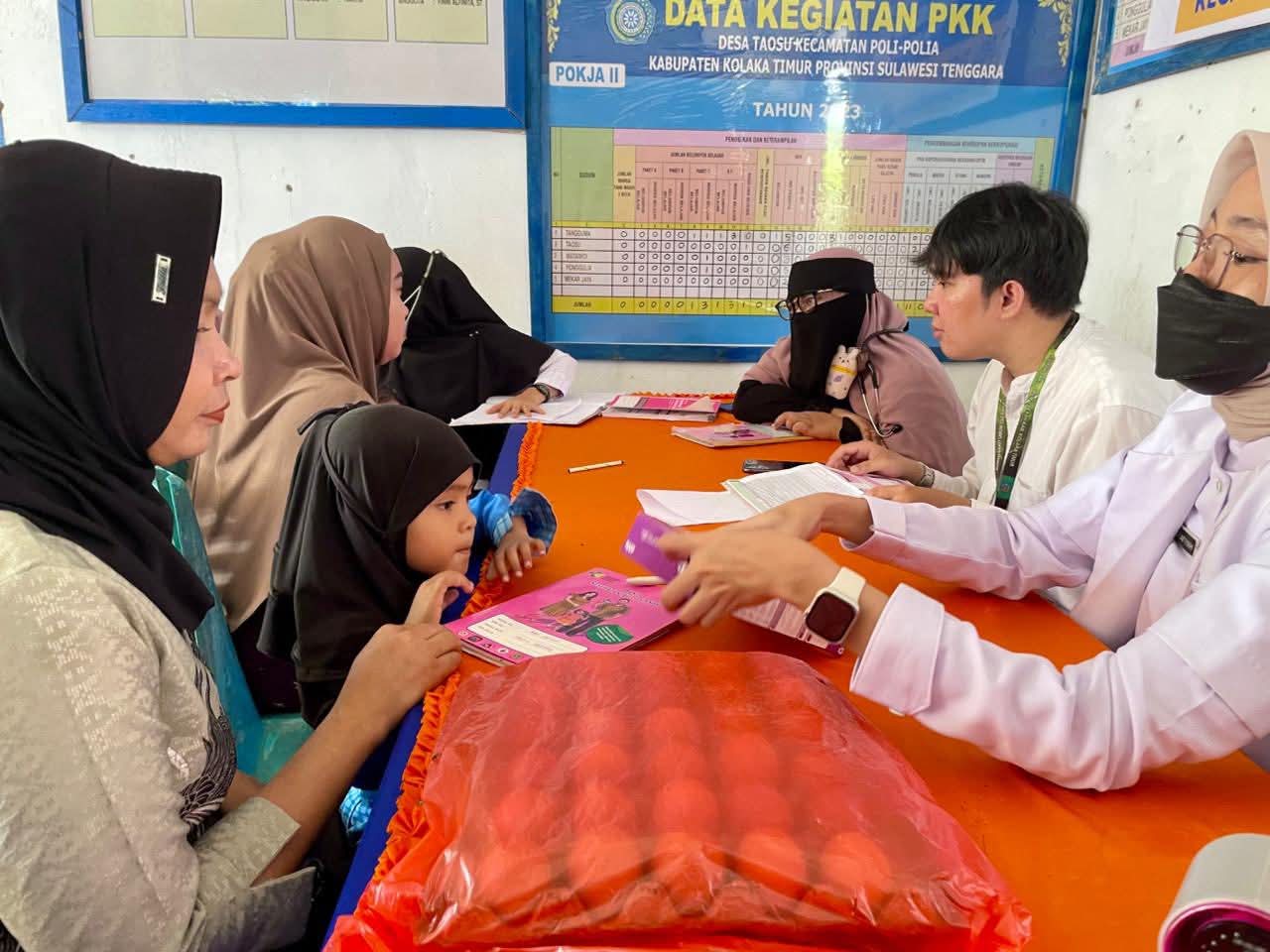 Kegiatan ini turut melibatkan dokter spesialis anak, Siska Safriana, dan ahli gizi RSUD Koltim, Erlangga, yang memberikan pendampingan langsung kepada keluarga dan kader posyandu.