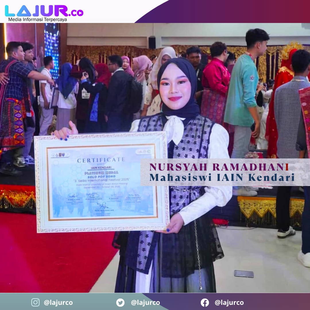 LAJUR.CO, KENDARI – Suara emas Nursyah Ramadhani, mahasiswi Institut Agama Islam Negeri (IAIN) Kendari berhasil memukau dewan juri dan peserta dari berbagai negara dalam ajang SelBa International Festival 2025.
